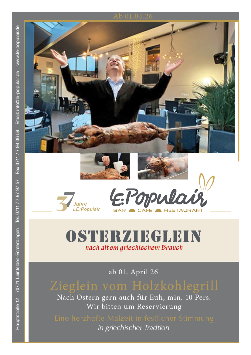 Seit über 37 Jahren steht das LE:Populair in Leinfelden-Echterdingen für hochwertige mediterrane Küche, stilvolles Ambiente und persönliche Gastfreundschaft.