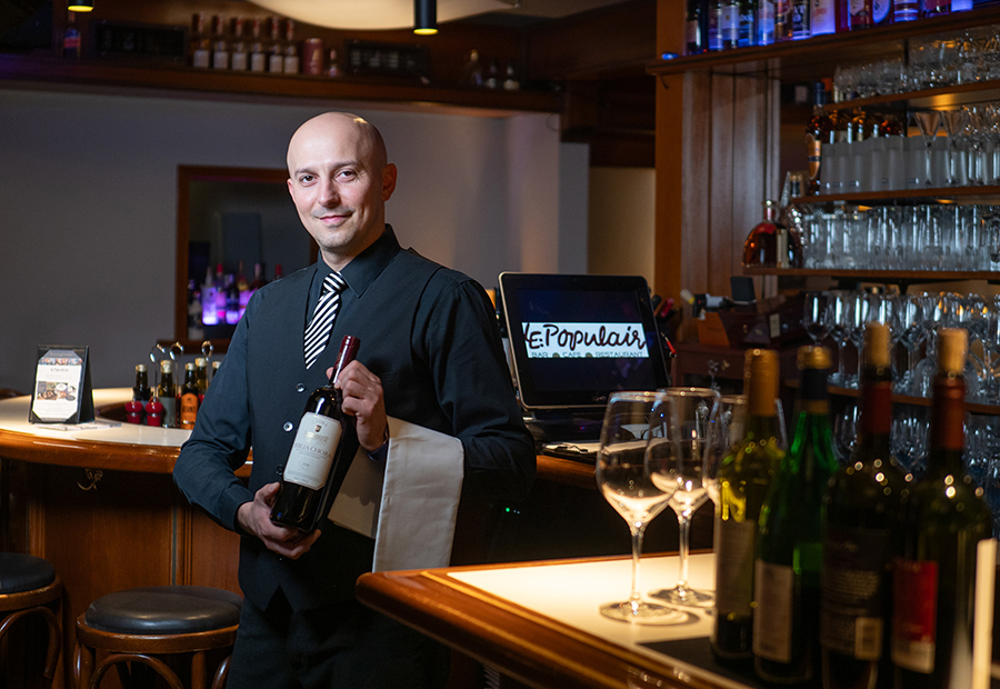 Seit über sieben Jahren im Populair. Christian, der Chef de Rang sozusagen sorgt dafür, dass die Abläufe im Servicbereich perfekt organisiert sind. Essen und Getränke kommen zum richtigen Zeitpunkt an die Tische der Gäste. Aber auch die finale Zubereitung am Tisch wie z.B. das Filetieren von Fisch gehört zu seinen Aufgaben.