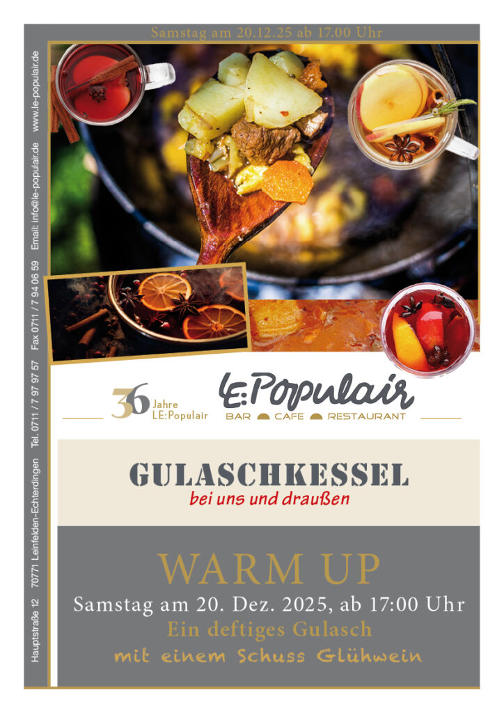 Unser traditioneller Gulaschkessel – bei uns und draußen!